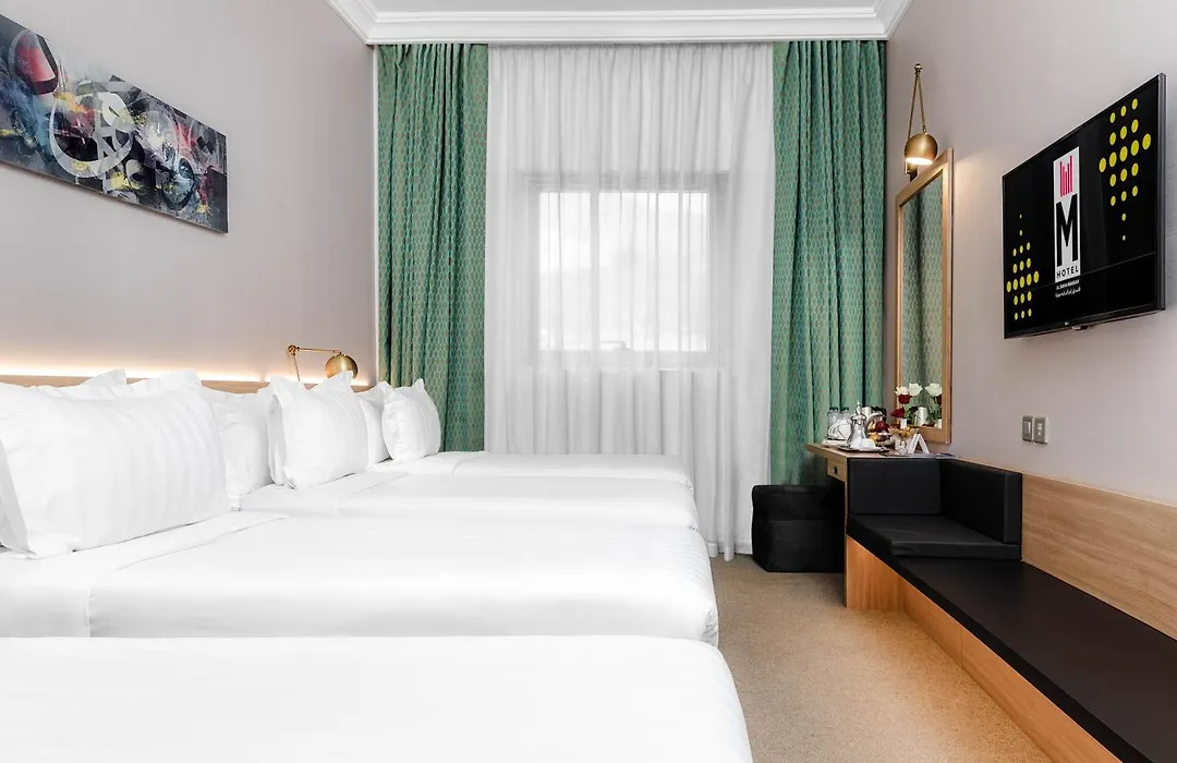 The M welcomes guests to 635 rooms fitted with ironing facilities and climate control as well as complimentary Wi-Fi and a flat-screen TV with satellite channels. The private bathrooms come with a walk-in shower and a separate toilet along with comforts such as hair dryers and bath sheets. Guests can also enjoy city views.